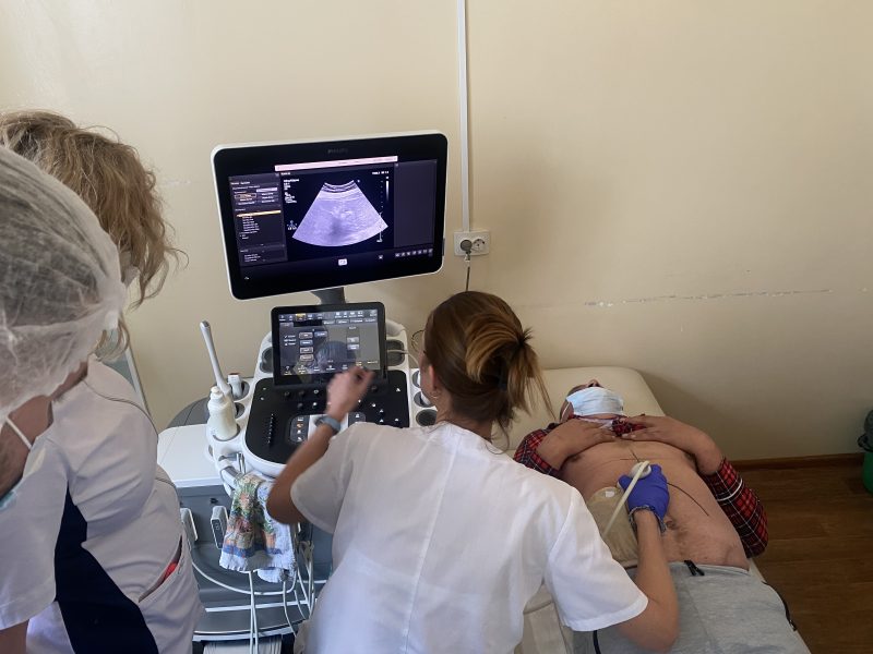 — пациенту с метастатическим поражением печени, где установка проводилась под контролем УЗИ и под местной анестезией.