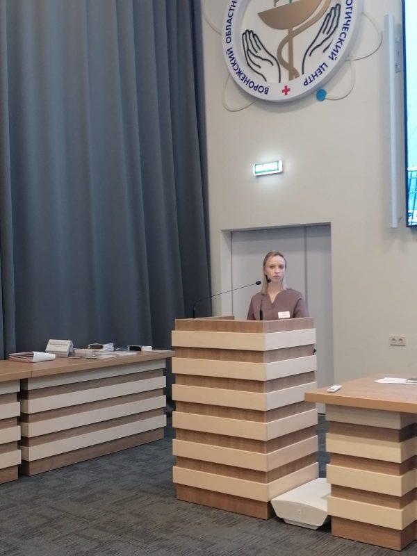 28 ноября 2025 года в Воронежском областном научно-клиническом онкологическом центре состоялась практическая конференция молодых специалистов «Клинические наблюдения в области лечения и диагностики онкологических заболеваний». В рамках мероприятия был представлен доклад Хлебниковой Полины Сергеевны, ординатора 2 курса кафедры онкологии ВГМУ им. Н.Н. Бурденко и врача-стажёра БУЗ ВО «ВОНКОЦ», посвящённый современным методам лечения немеланомных видов рака кожи.