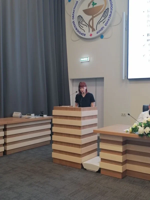 «Клинические наблюдения в области лечения и диагностики онкологических заболеваний», прошедшей на базе Воронежского областного научно-клинического онкологического центра, состоялся доклад Головенко Марии Александровны, врача-онколога отделения паллиативной медицинской помощи, на тему: