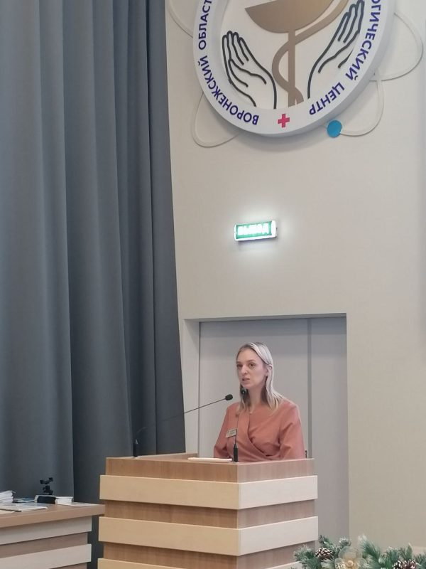 «Клинические наблюдения в области лечения и диагностики онкологических заболеваний», прошедшей в Воронежском областном научно-клиническом онкологическом центре, состоялся доклад врача-онколога центра амбулаторной онкологической помощи дневного стационара химиотерапевтического отделения №1 Воронежского областного научно-клинического онкологического центра Славинской Татьяны Валентиновны.
