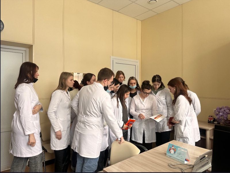 Белые халаты, горящие от интереса глаза, активное обсуждение  – таким прошло  практическое занятие по онкологии для студентов 4 курса лечебного факультета в преддверии Всемирного дня борьбы с онкологическими заболеваниями  в поликлинике Воронежского областного клинического научного онкологического центра.