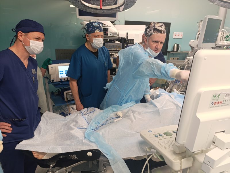 В первый день заведующий отделением РНЦРХТ, врач-хирург, радиолог, кандидат медицинских наук Руткин Игорь Олегович, специализирующийся на лечении опухолей с применением радиочастотной катетерной абляции, провел три операции пациентам с гепатоцелюллярным раком и солитарными метастазами рака толстой кишки.