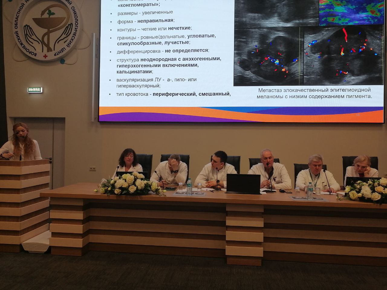 06 февраля 2026 г. в рамках практической конференции молодых онкологов «Клинические наблюдения в области лечения и диагностики онкологических заболеваний», проводимой в Воронежском областном научно-клиническом онкологическом центре, состоялся доклад Панковой Екатерины Александровны – врача ультразвуковой диагностики отделения ультразвуковой диагностики Воронежского областного научно-клинического онкологического центра – «Ультразвуковое исследование регионарных лимфатических узлов при меланоме кожи: опыт Воронежского областного научно-клинического онкологического центра».