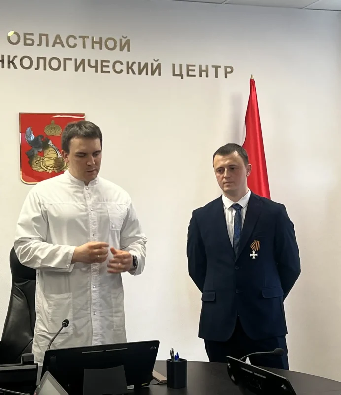 26 февраля 2026 года Главным врачом онкоцентра Русланом Ивановичем Мошуровым был приглашен особый гость – экс командир штурмового взвода 9-й роты «Черная мамба», лейтенант 252 Воронежского мотострелкового полка, Георгиевский кавалер, участник регионального проекта поддержки участников СВО при содействии Губернатора Александра Викторовича Гусева, региональной программы «Герои земли Воронежской»-Владимир Александрович Жетенев.