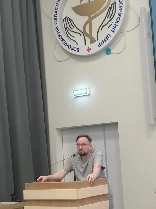 В работе конференции традиционно приняли участие специалисты Воронежского областного научно-клинического онкологического центра. От учреждения в дискуссии по докладу принял участие-заведующий отделения рентгенохирургических методов диагностики и лечения, д.м.н., и.о кафедры онкологии ВГМУ им. Н.Н. Бурденко-Ольшанский Михаил Сергеевич и врач отделения рентгенохирургических методов диагностики и лечения Шкляров Александр Юрьевич.