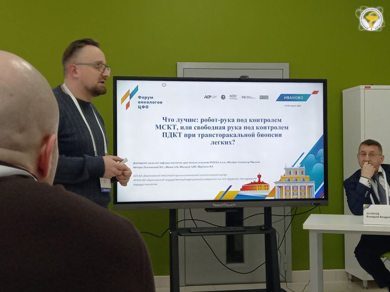 Ключевым моментом стало выступление Александра Шклярова и Вадима Щербакова. В совместном докладе они сравнили возможности двух методов: стандартной плоскодетекторной компьютерной томографии и роботизированной приставки. Оба инструмента помогают верифицировать периферические образования в грудной клетке — то есть точно определять, с чем именно имеет дело врач.