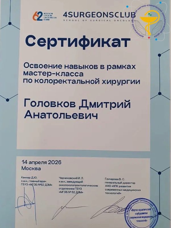 Ведущий абдоминальный хирург Воронежской области – Дмитрий Анатольевич Головков, совершенствует знания на мастер-классе главного онкопроколога страны – Черниковского Ильи Леонидовича.